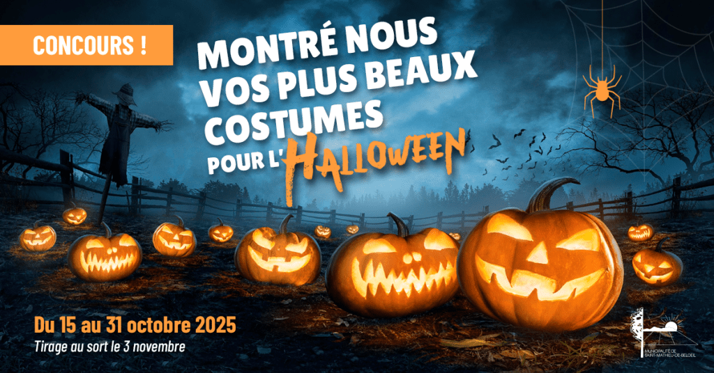 En solo, en duo ou en famille, prenez une photo de votre déguisement et faites-la parvenir par courriel à loisirs@smdb.ca, au plus tard le 31 octobre. N’oubliez pas d’indiquer vos noms, votre numéro de téléphone et de préciser si vous autorisez ou non la publication de votre photo sur nos réseaux sociaux. Un tirage au sort sera effectué le 3 novembre parmi toutes les participations reçues à l’aide d’un outil numérique de tirage au sort. Avec votre autorisation, plusieurs photos seront publiées afin de mettre en valeur les magnifiques costumes de nos citoyens.