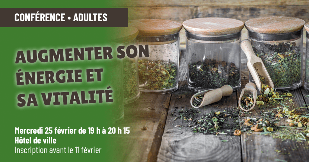 Carine Lavigueur, herboriste et professeure de yoga, sait transmettre des informations utiles de manière claire et dynamique. Elle vous fera découvrir des idées de tisanes pour vous accompagner tout au long de la journée, des suggestions de collations et d’aliments favorisant l’énergie, ainsi que des habitudes de vie et des exercices simples pour retrouver votre vitalité. Venez-vous informer tout en passant un agréable moment !