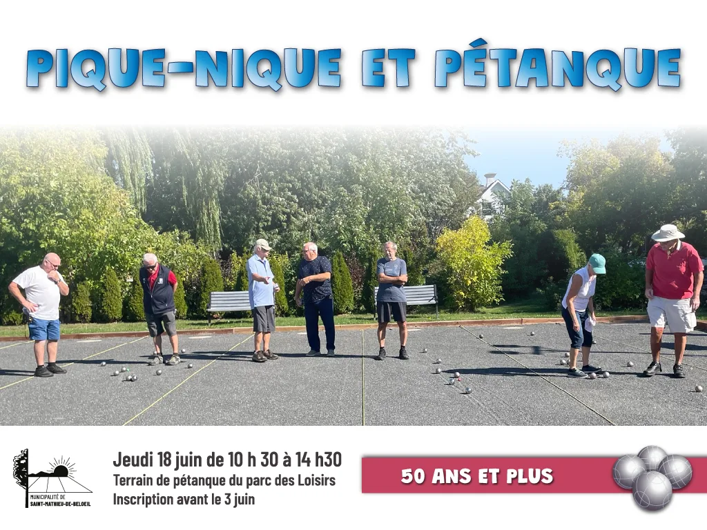 Dans le cadre de la Journée mondiale de lutte contre la maltraitance des personnes aînées, les citoyens de 50 ans et plus sont invités à venir pique-niquer et participer au tournoi amical de pétanque.